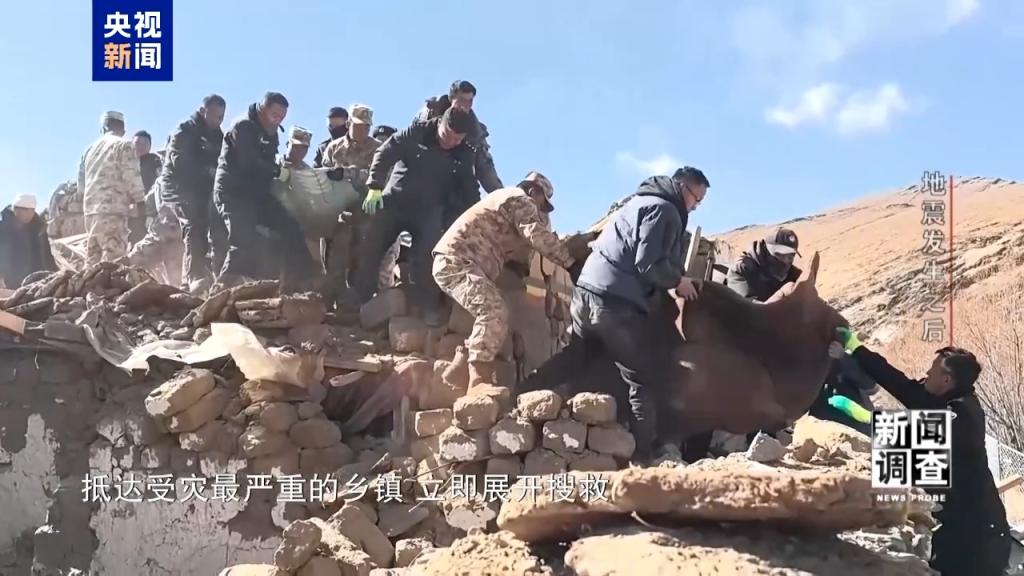 与此同时,西藏日喀则军分区某部也在当天上午9时45分左右,抵达受灾最严重的乡镇,立即展开搜救。武警西藏总队日喀则支队也迅速完成集结,赶往震中。