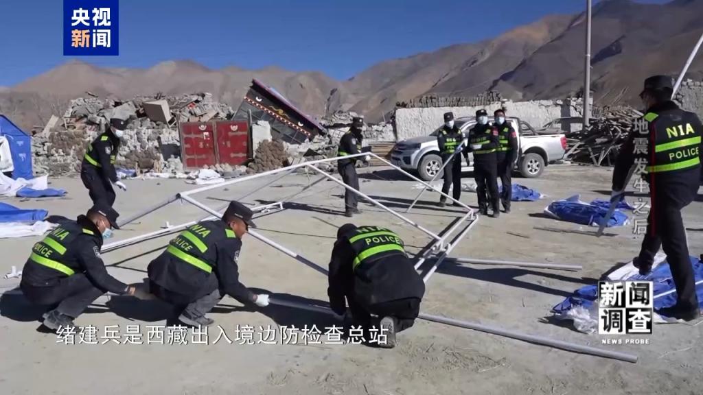 西藏出入境边防检查总站日喀则边境管理支队定日边境管理大队副大队长 绪建兵:今天的任务重点,第一个是帮助村里面的干部统计群众家庭受灾情况,第二个是帮着分发救援物资,第三个就是对村子里面开展消杀工作。第四个是开展义务巡诊工作,为老百姓测点血压、送医送药,主要就是这些。在开展抗震救援工作的同时,我们也充分考虑单位工作的实际,确保每个岗位有一名民警能够保障正常工作的运行,但我们更侧重于的是抽调更多警力参与到救灾工作中。